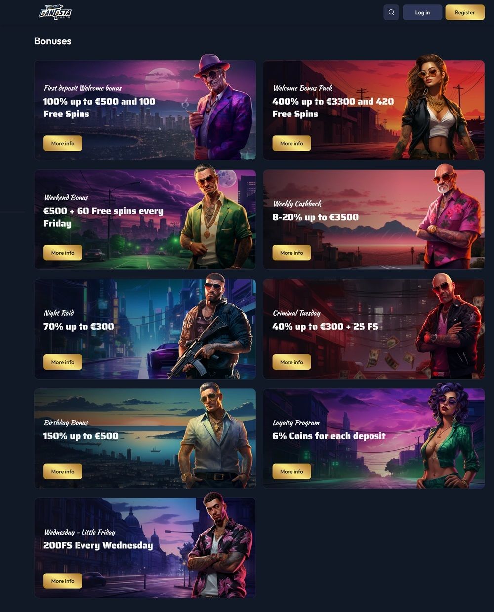 Gangsta Casino is a modern online casino with a huge selection of games, great bonuses and a convenient mobile app. While it has stricter withdrawal requirements and more complex game filtering, it offers a live casino with real dealers and the ability to play for both traditional currencies and cryptocurrencies. If you're looking for variety of games and big bonuses, Gangsta Casino is definitely worth checking out.